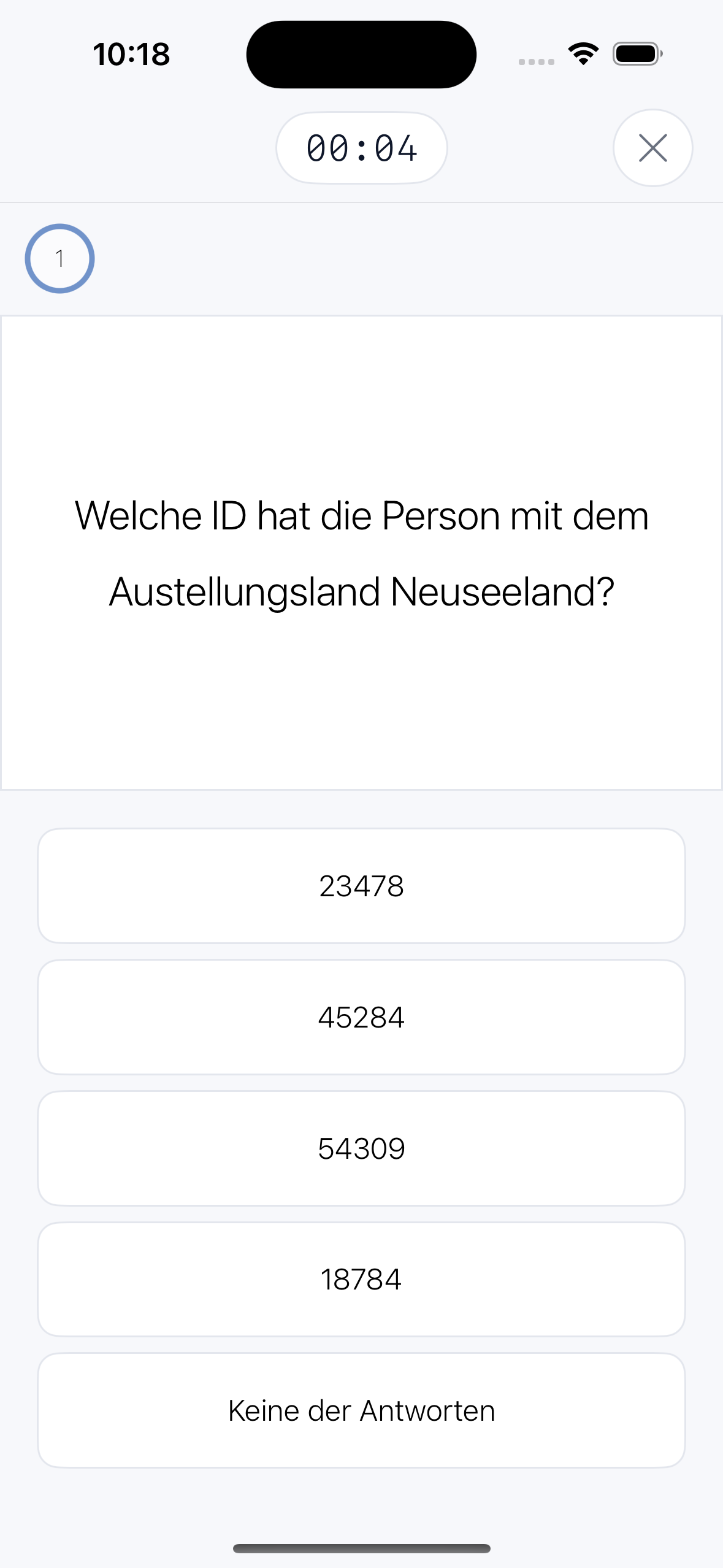 In der Abrufphase werden gezielte Fragen zu den zuvor gelernten Ausweisen gestellt, die du aus dem Gedächtnis korrekt beantworten musst.