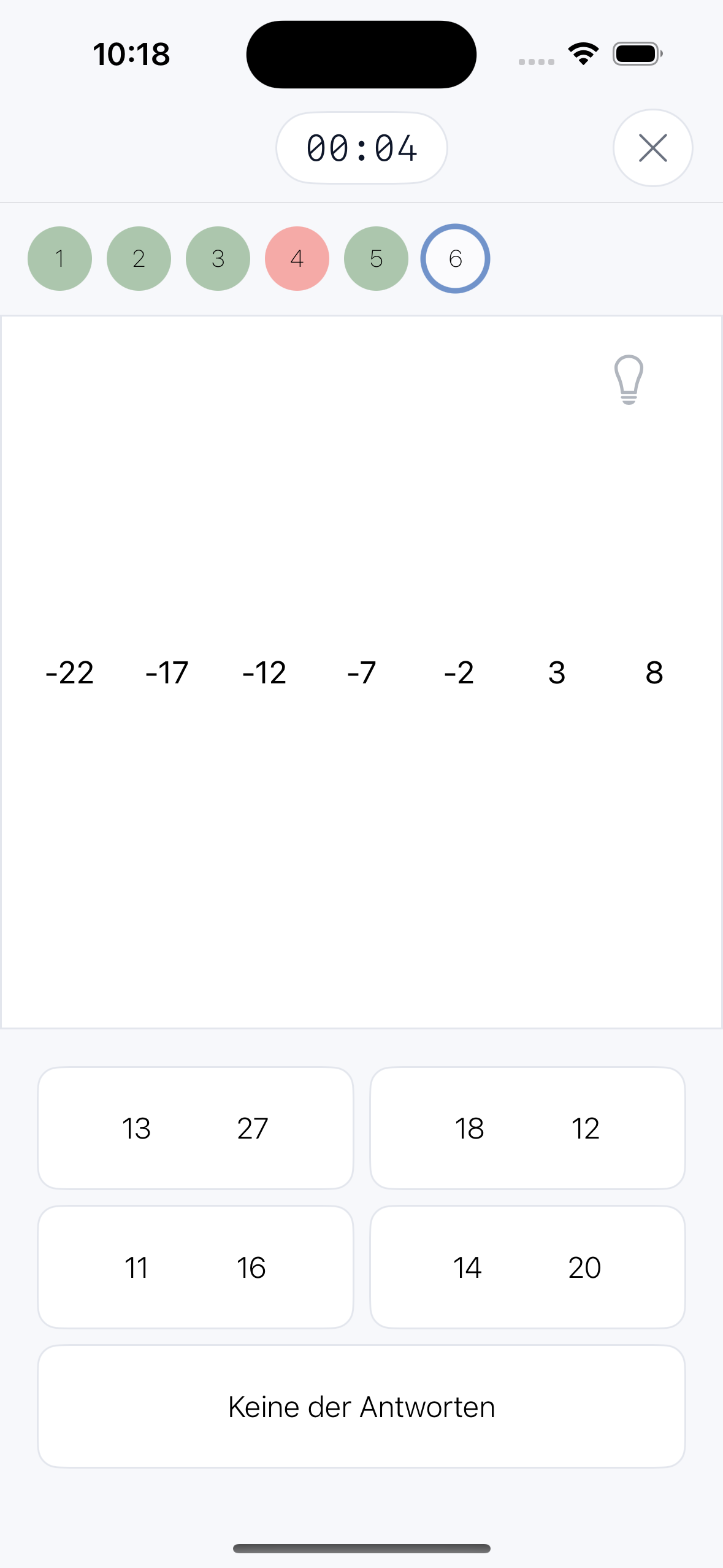 Dir wird eine Zahlenreihe präsentiert, die einem bestimmten Muster folgt. Deine Aufgabe ist es, die Folge korrekt fortzusetzen.