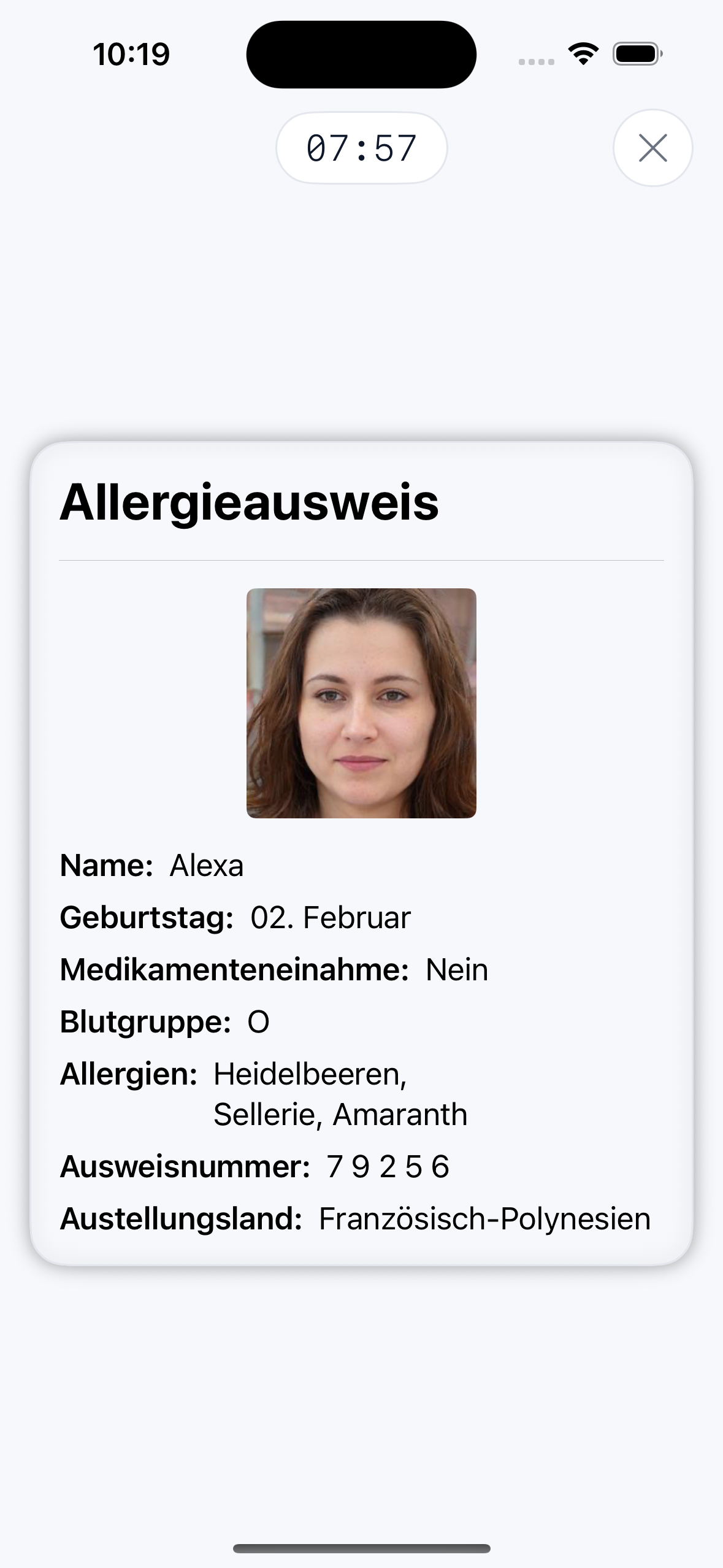 In der Merkphase prägst du dir die Ausweise mehrerer Personen ein, die Informationen wie Namen, Herkunft, Merkmale oder Allergien enthalten.